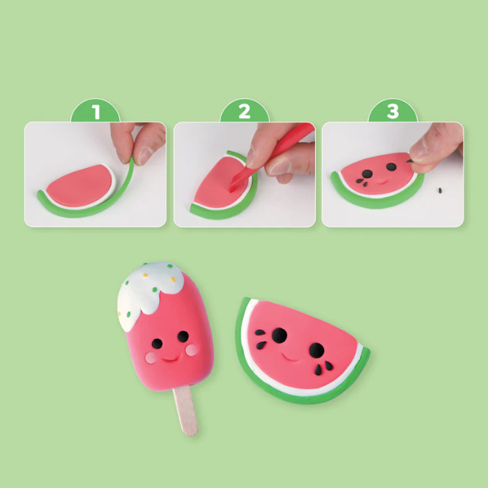 • Includes everything required to make two cute clay character necklaces - Watermelon and Icy Pole