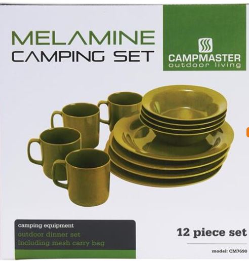 Campmaster 12pc Melamine Outdoor Dinner Set - with Mesh Carry Bag