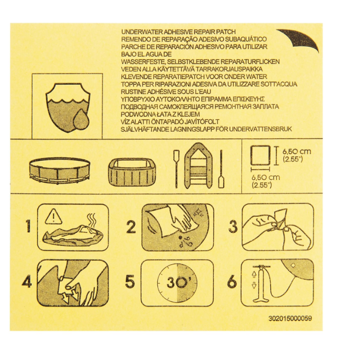 Bestway Underwater Adhesive Repair Patches are a quick and easy way to patch up punctures on inflatable products. Each pack includes 10 of the heavy-duty repair patches which are great for patching up boats, pools, spas and airbeds. Bestway has ensured that the puncture repair patches are water-resistant., allowing you to repair problems below the waterline of the boat, pool or spa. Each puncture repair patch is ideal for patching up smaller punctures and abrasions. To apply the self-adhesive puncture repair patches, simply clean the damaged area of your inflatable, peel off the back of a patch and then neatly stick it down. Once you’ve applied an inflatable repair patch, leave it to set for 30 minutes before reflating your product.