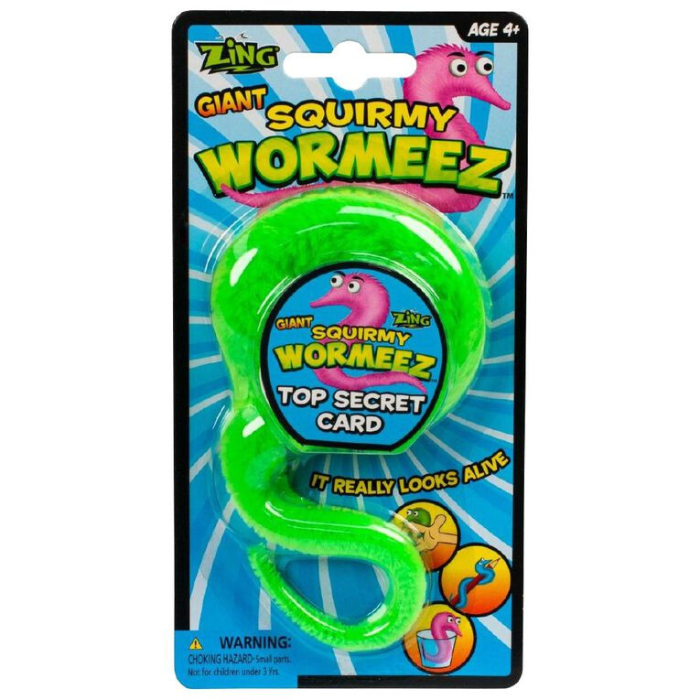 The original Zing Wormeez, they look alive! This Squirmy Wormeez is the magical pet that moves and jumps. It performs tricks on your hands, in and out of cups.