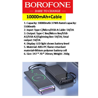 BJ76 Power Bank 10000mah Cables Built In
