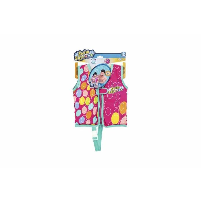 Get your child on the path to swimming success and make it safe and comfortable with the Swim Safe ABC™ AquaStar™ Fabric Toddler Swim Vest! This knitted-fabric swim vest helps your child, ages 1-3, master the basics of swimming and pool safety as part of the Bestway® Swim Safe step by step program. With its soft fabric and built-in foam pads, your child can enjoy both comfort and buoyancy as they learn to swim with this Step B product. Plus, it includes an adjustable buckle and strap for safety, and a durable, auto-lock zipper with flap protection when closed for added security. The fabric is UPF 50+, which helps block harmful UV rays and prevents fading. The perfect next step on your child's swimming journey, they'll learn to rotate their arms and practice paddling with their hands as they progress to step C.