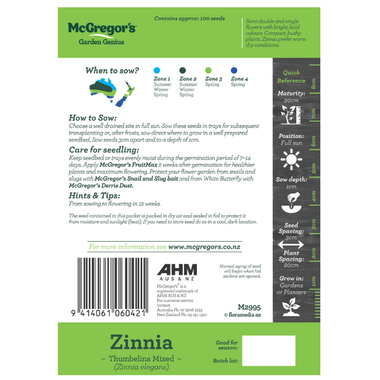 Seeds M2995 Zinnia - Thumbelina Mixed