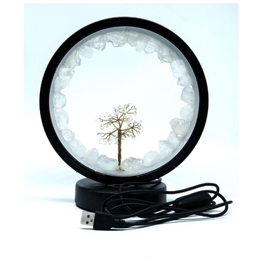Clear Quartz LED USB Lamp with Gemstone Tree