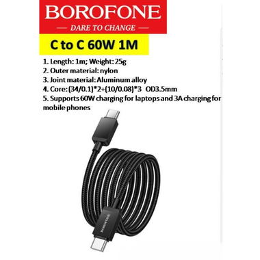 BX120 Type C to C 60w Charging Data Cable - 1m (White/Red Box)