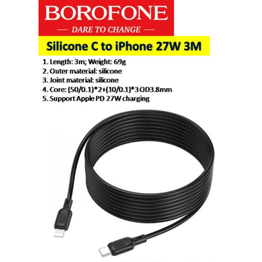 BX113 Lightning to Type C 27w Silicone Charging Cable - 3m (White/Green Box)