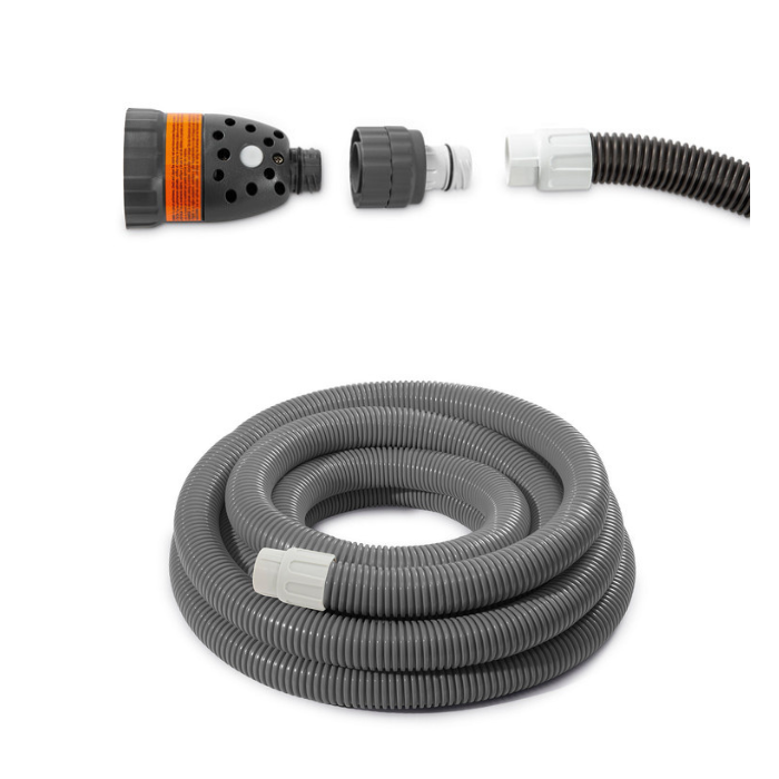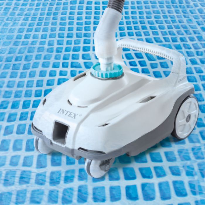 The INTEX ZX100 is an ultra-convenient pressure-side automatic floor cleaner, convenient maintenance for spas and pools up to 18ft. Simply connect to the pool inlet fitting, and the suction is generated within the cleaner itself. Say goodbye to debris while it easily picks up leaves, dirt, sand, and bugs directly in a large capacity collection tray with a convenient carry handle. Engineered with oversized wheels that rotate in one direction to maintain an efficient cleaning path. Designed with a new angled hose elbow and swivel joint for no hose tangle and less hassle. Keep your pool clean all summer long.