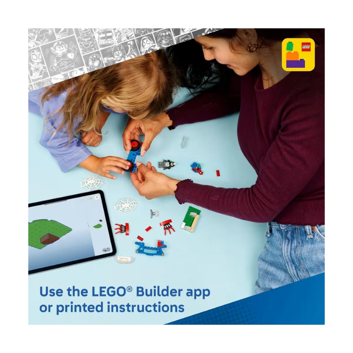 Kids help Spidey retrieve a stolen blue gem, dodge flying pizzas launched from Rhino's pizza oven shooter, and capture Rhino in a giant spiderweb trap - which also fits onto the motorcycle. Designed with budding builders in mind, this building set is packed with details to inspire kids with endless imaginative play. It makes a great birthday or any-time gift for fans of Spidey and His Amazing Friends. It comes with colourful pictorial instructions, large Starter Bricks and separate bags containing one buildable model per bag to make construction fast and fun. With the LEGO Builder app, kids can zoom, rotate in 3D and track progress with easy-to-follow digital instructions. Contains 61 pieces.