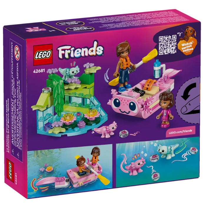 - AXOLOTL TOY BUILDING SET – This kids’ LEGO® Friends Axolotl Adventure Boat (42681) includes a mini boat, 2 characters and 2 mini axolotl toys, launching fun play for girls and boys ages 5 years and up