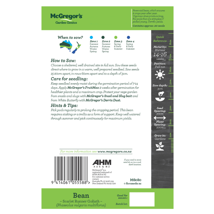Seeds M6080 Bean - Scarlet Runner Goliath
