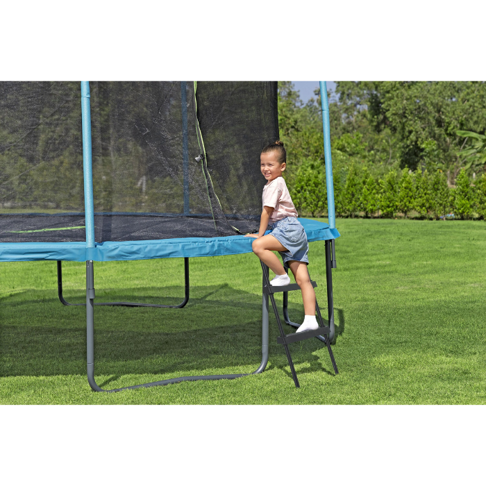 Comprehensive equipment: The scope of delivery includes a patent-pending spring tensioner for quick and easy installation of the springs, 10 leg caps to protect the trampoline legs and a practical access ladder with a height of 81 cm to facilitate access to the jumping area.