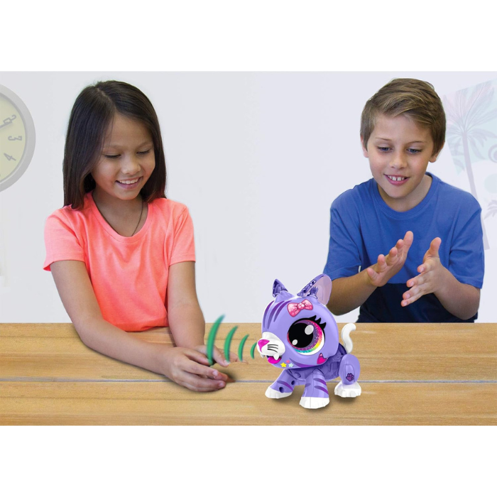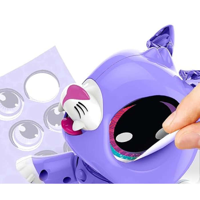 Follow the instructions to assemble your character with simple click 'n' create system, decorate with pretty stickers then switch it on and watch how the electronic motor brings your Kitten to life! Pat your pet to watch them change colours.