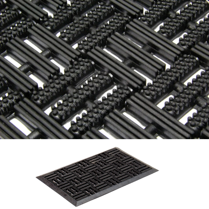 The Ultraguard Mat is a high quality entrance mat designed to effectively remove dirt and debris in high traffic areas as well as accommodating for drainage in wet areas. This heavy duty rubber mat is slip resistant and has bevelled edges around all four sides for safety. *This product has natural rubber in it, may cause a plasticiser migration reaction to occur on PVC & Vinyl floors. We strongly recommend against using this product on Vinyl, PVC & decorative flooring