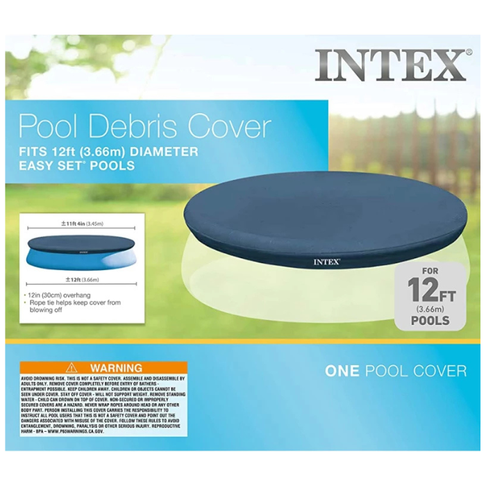 Keep debris from falling into your Easy Set pool with the Intex 12ft Easy Set Debris Cover. This convenient cover has a 12 inch overhang for a great fit. Tighten the rope tie to help keep the cover from blowing off.