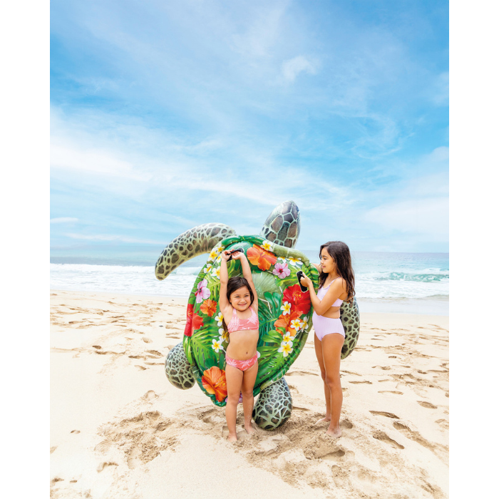 Hop on the world's friendliest sea turtle inflatable pool float by Intex for a comfortable and fun ride