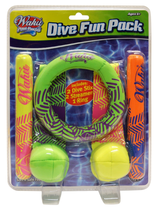 You’ll have hours of fun with The Big Fun Pack including Dive Stix, Dive Streamers and a Dive Ring.