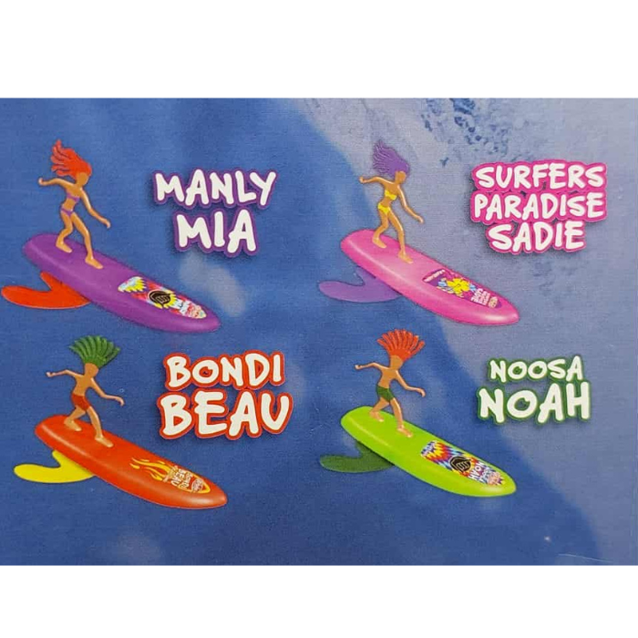Surf alongside your Surfer Dude or just watch and cheer him on. Randomly assorted toy.